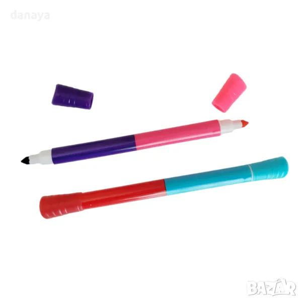 Цветни флумастери за рисуване и оцветяване. 14 двустранни флумастера, общо 28 цвята. Подходящи са за ученици, деца в детската градина и домашно ползване. Ярки и наситени цветове. С тях може да правите тънки и дебели линии. Може да се използват и като маркери за подчертаване на текст.