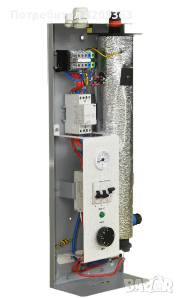 електрически котел без помпа, който може да бъде монтиран във вече съществуваща отоплителна система, без значение дали е на газ или твърдо гориво. Електрическия котел може да работи на три степени. В случай, че вземете този продукт той може да работи, като 4, 8 или 12 КВТ, това става възможно чрез трите превключватела, които се намират на лицевия панел на електрическия котел.