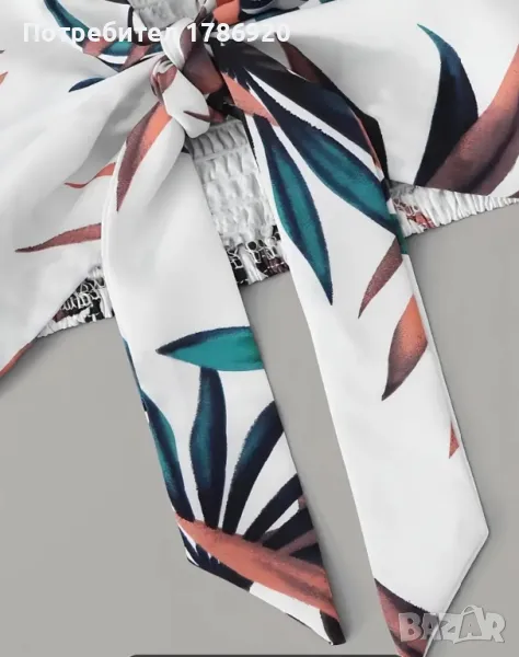 Цвят и десен: Бял с щампа на листа в зелено и прасковено