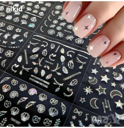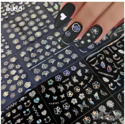 30 бр. микс холограмни самозалепващи лепенки ваденки за нокти → Обява 46991347