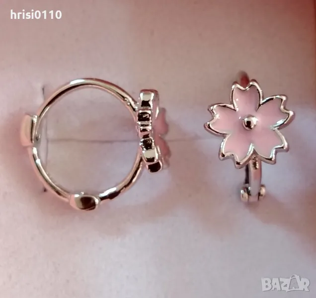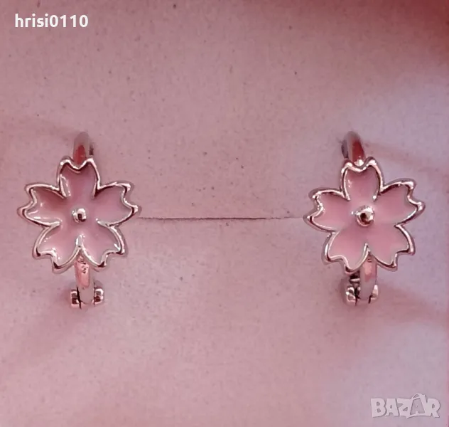 Нови нежни сребърни обечки с емайлирани розови цветя → Обява 46991601