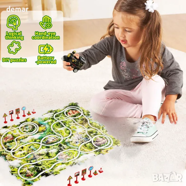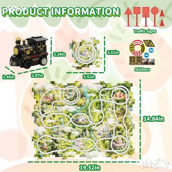 Комплектът с влак FUN TRACK PUZZLES, предназначен за деца на възраст от 2 до 6 години, съчетава креативност и образование с 12 парчета от релси и 4 опции за маршрути, което позволява на децата да създават свои собствени пътувания с влак. Тази играчка подобрява логическото мислене и уменията за планиране на маршрут, като същевременно подобрява пространственото съзнание и способностите за решаване на проблеми. Изработен от безопасна, нетоксична ABS пластмаса с гладки ръбове, той е идеален за соло или семейна игра. Комплектът включва 12 части от пъзел, детайлен модел на влак, 12 пътни знака и стикери, всички красиво опаковани, което го прави идеален подарък за рождени дни или специални поводи.