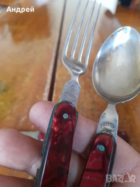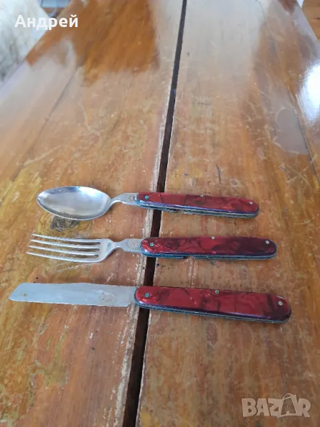Стари сгъваеми вилица,лъжица и нож П.Денев → Обява 46993008