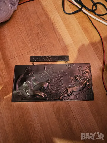 Старинно красиво медно пано - Красив и силен войн улучва своята жертва - красота за вашия, дом, офис, магазин .