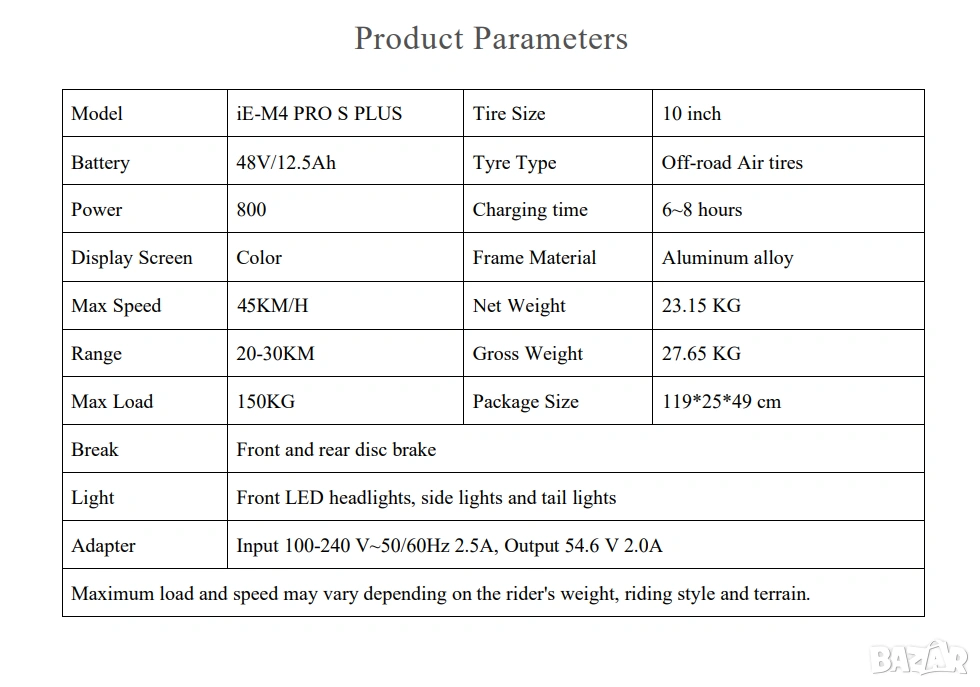 • МАКСИМАЛНА СКОРОСТ до 45 км/ч