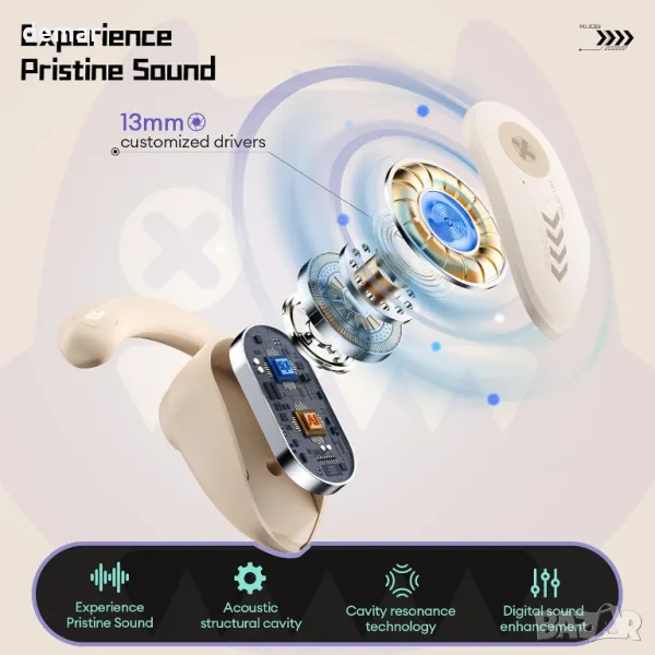 Безжичните слушалки ZOMBIES CAT имат дизайн с отворено ухо за ситуационна осведоменост, което ги прави идеални за дейности на открито като бягане или колоездене. Оборудвани с Bluetooth 5.3, те осигуряват безпроблемна връзка и чист звук. Ергономичният дизайн осигурява комфорт през целия ден, идеален за продължително носене или интензивни тренировки. Насладете се на богат, завладяващ звук с персонализирани 13 мм динамични драйвери, осигуряващи ясни високи и дълбоки баси. С удължен живот на батерията до 60 часа с едно зареждане, тези слушалки предлагат музика без прекъсване през цялата седмица.