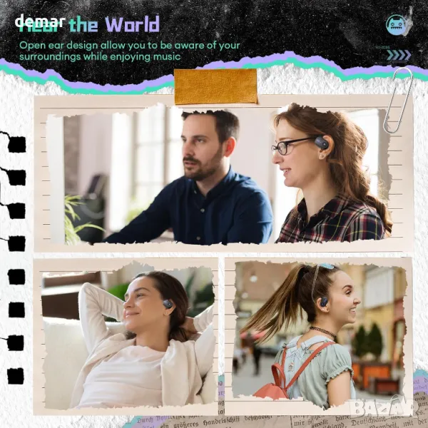 Слушалки с отворено ухо ZOMBIES CAT, безжични HiFi стерео 60H Bluetooth IPX5 за Android iOS, B7