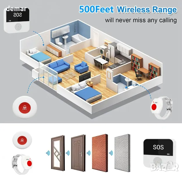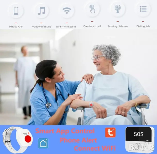 Тази система за повикване и помощ е предназначена за възрастни хора, пациенти и хора с ограничена подвижност, включваща бутон за спешно повикване, който се носи на китката с водоустойчивост IP55 и обхват от 1000+ фута. Приемникът, захранван от кабел за данни и свързан към интелигентното приложение Tuya, предлага персонализирани известия, включително 12 мелодии, сила на звука, яркост и настройки за аларма, всички управлявани чрез приложението. Системата поддържа споделяне на множество потребители, което позволява получаване на сигнали от всеки свързан. Идеален за домове, старчески домове и клиники, той изисква приемникът да е в рамките на 20 метра от WiFi сигнала за оптимална работа.