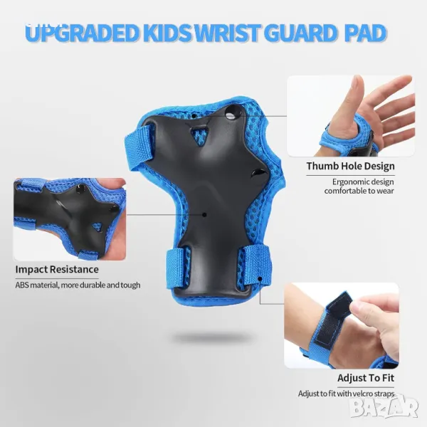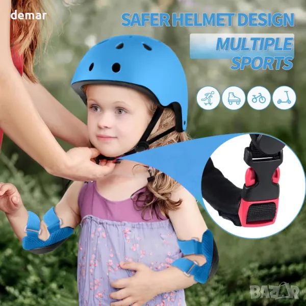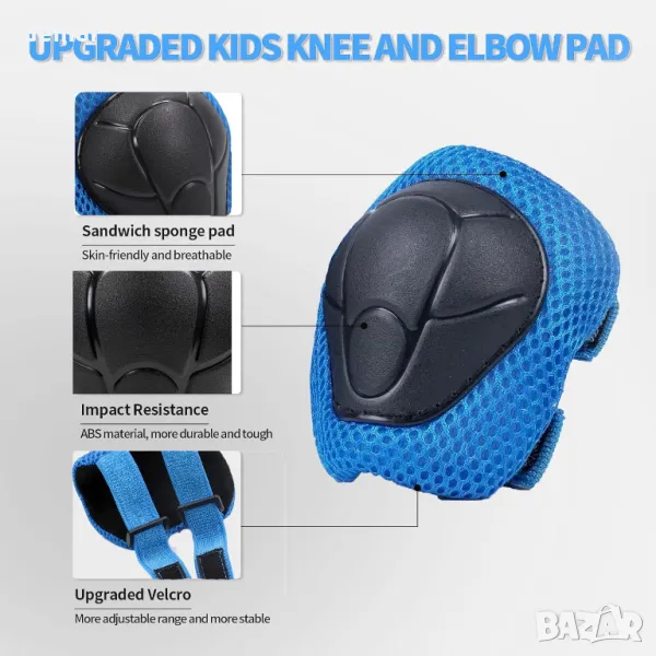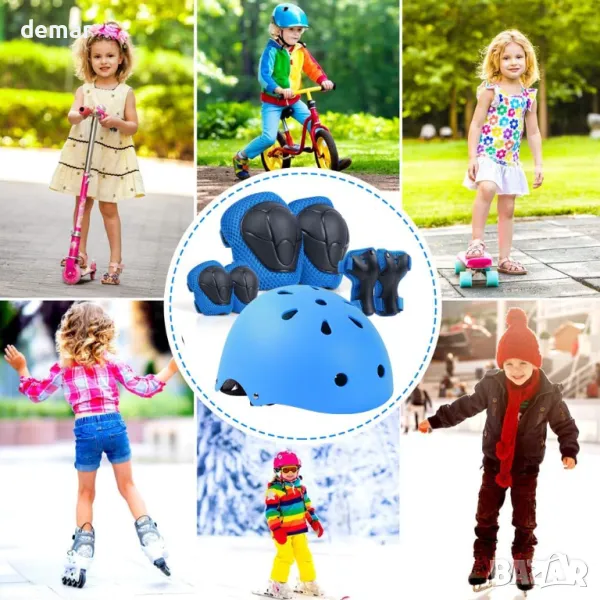 LANOVAGEAR Детска велосипедна каска и комплект защитно оборудване за скейтборд, колоездене, синьо