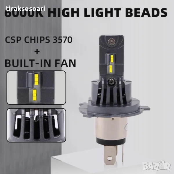 Най-ново поколение Мини Дизайн LED крушки, подходящи за 100% от автомобилите, които фабрично са с H4