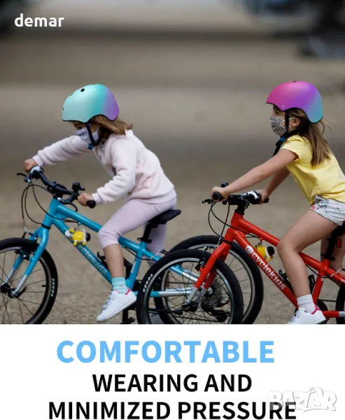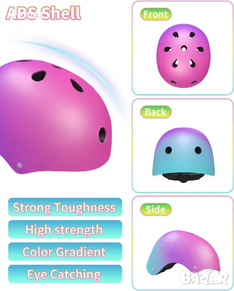 LANOVAGEAR Детска велосипедна каска за малки деца за 2-14 год., розово+лилаво+синьо, размер S