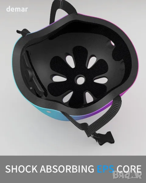 Тази детска каска предлага двойна защита с твърда ABS обвивка, удебеляваща EPS пяна и мека гъба отвътре, осигурявайки здрава, многопластова защитна система. Шлемът разполага с регулируем монтаж с размери S (48-54 см) и M (55-58 см), регулируеми презрамки и въртящ се циферблат, за да осигури перфектно прилягане към обиколката на главата на вашето дете. Отличната вентилация се постига чрез 11 вентилационни отвора, проектирани със специализирана аеродинамика, за да поддържат вашето дете хладно и комфортно по време на интензивни дейности, като насърчават въздушния поток и изпарението на влагата. Тази универсална каска е идеална за множество спортове, включително скейтборд, колоездене, ролери и др. Лек, стилен и удобен, той е идеален избор за подарък за всеки повод, включително рождени дни и празници.