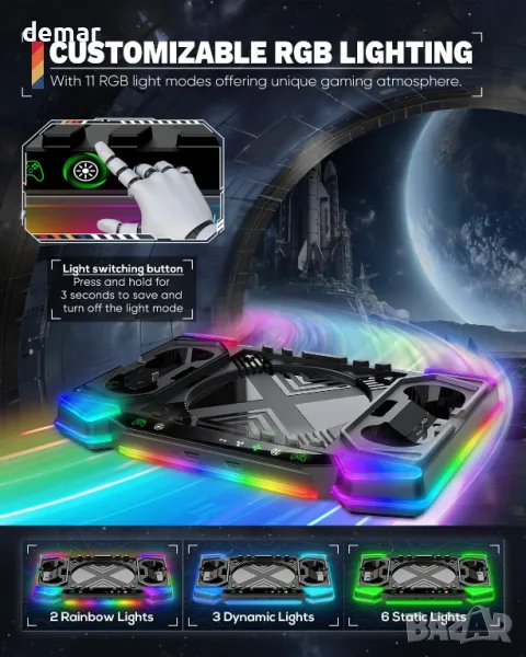 Стойка за зареждане и охлаждащи вентилатори за Xbox Series X, 11 RGB светлинни режима