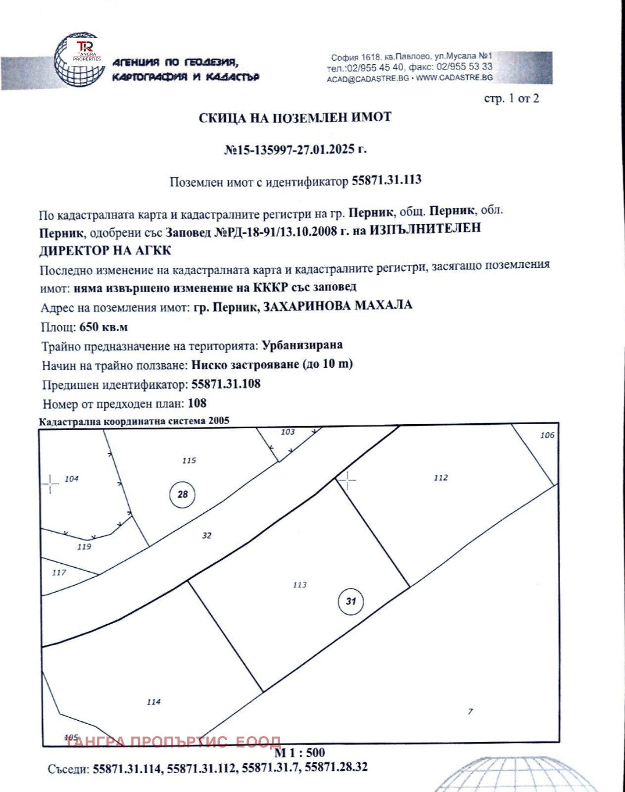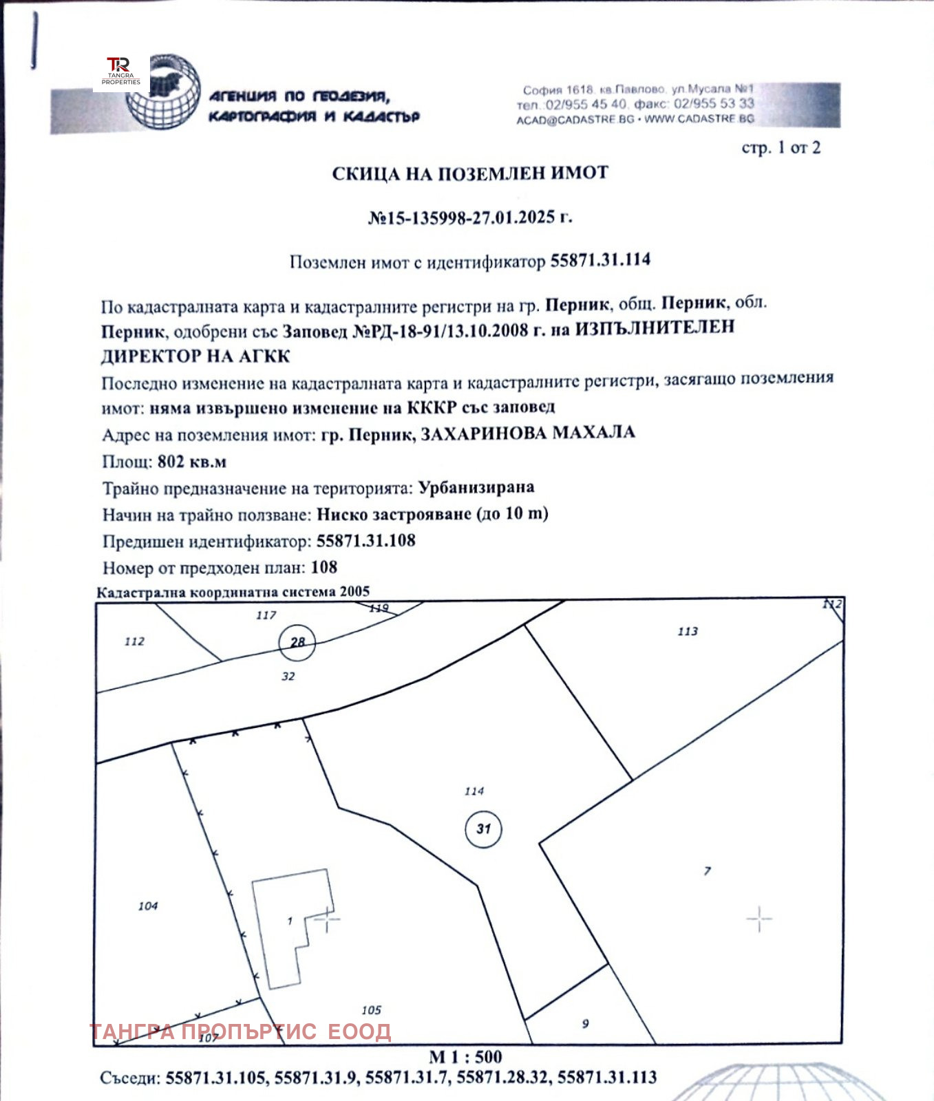 Агенция Тангра пропъртис предлага на Вашето внимание поземлен имот в урбанизирана зона, с направен ПУП, разрешаващ жилищно строителство или енергопроизводство, намиращ се в най-търсеният и желан район на гр. Перник, а именно-кв. Църква.