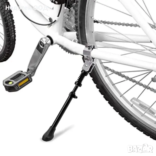 Регулируема алуминиева странична стойка, в черен цвят, идеална за велосипеди с колело от 24"- 28".
