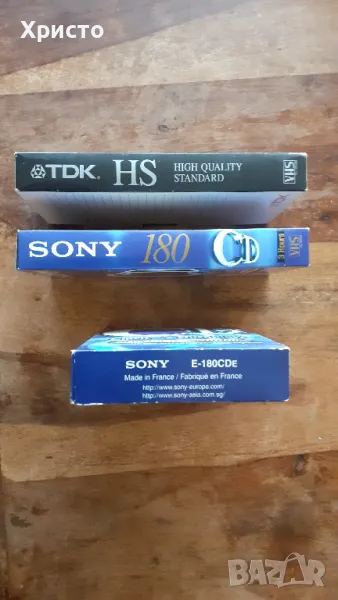 Продавам видеокасети VHS празни SONY и TDK, 180 минути. Касетите SONY са 2 броя и са празни, не са правени записи на тях, касетата TDK е със някакъв запис на новини от телевизията, който разбира се може да се изтрие. В изправност са. Цената е за 1 брой, независимо коя.
