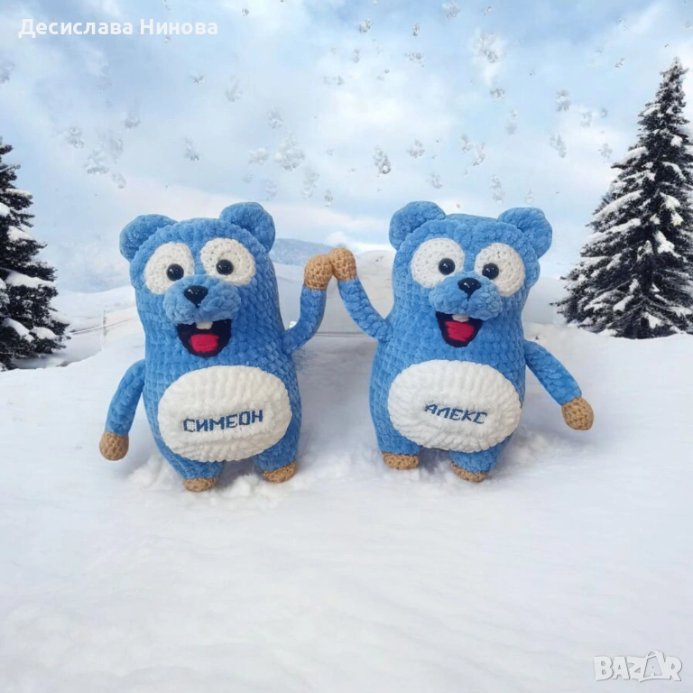Изработвам по поръчка любими анимационни герои, изплетени на една кука.Използвам бебешка, плюшена прежда, пълнежът е гладък силиконов пух.