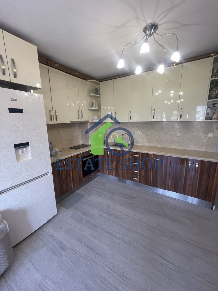 ЕСТЕЙТ ШОП има удоволствието да Ви представи ТРИСТАЕН слънчев и приветлив апартамент. Състои се от входно антре, хол с трапезария и кухня, две спални, баня с тоалетна, две тераси и прилежащо избено помещение. Изложение: СЕВЕР-ЮГ. За удобството и комфорта на новите собственици, жилището се предлага напълно обзаведено. Разполага с всичко необходимо за едно домакинство. В сграда с чист и поддържан вход и общи части. Комуникативен район, в близост до търговски обекти и до спирки на градския транспорт. Ние оказваме съдействие при отпускане на банков кредит. За повече информация и допълнителни въпроси, относно този имот, както и за много други предложения, не се колебайте да се свържете с нас!