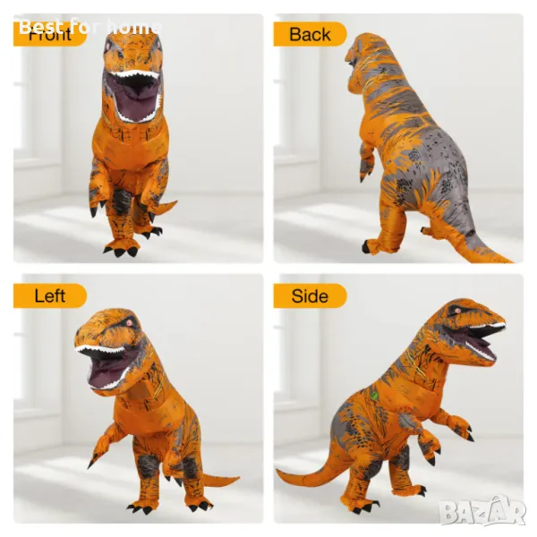 Костюмите на динозаври използват 4xAA батерии [Без включена батерия], надуваемият trex може да се надуе напълно за 1-2 минути.