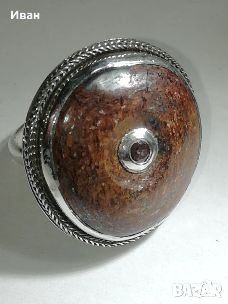 Сребърен пръстен със Сапфир и Слънчев камък → Обява 46999237
