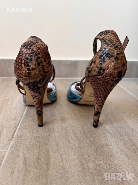 Елегантни високи обувки в синьо и змийски принт, размер 40, стелка - 26 см, височина на тока - 10 см
