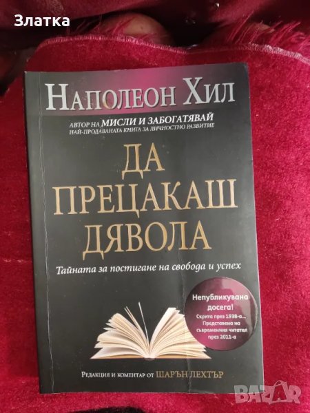 Продавам нова книга "Да прецакаш дявола" на Наполеон Хил. Цена - 16лв. Провокативна и вдъхновяваща, книгата „Да прецакаш Дявола” се появява сякаш в точния момент, за да ни помогне да преодолеем ограниченията си и да намерим решение на трудностите в едно време на несигурност и тревожност. Самият Хил е писал книгата в периода на Голямата депресия, когато много хора са се чувствали като в капан, обезверени и лишени от възможности. Тези години напомнят много настоящето време на икономическа криза, затова съветите и изводите на Хил са напълно приложими и днес. Обща цена 40 лв. Останалите 50-тина книги на другите снимки продавам общо за 💯 лв. Ако се купят повече неща и от другите ми обяви, естествено, че ще има МНОГО ГОЛЕМИ отстъпки!