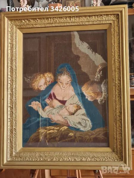 Продавам гоблен "Свята нощ". Размери: без рамката - 37 / 50 см., с рамката - 55 / 68 см. Рамката е дървена. Отраженията на снимките са от стъклото. Може лека корекция на цената.
