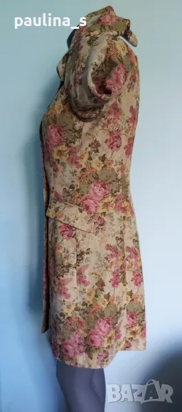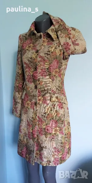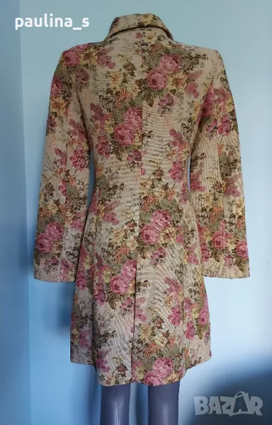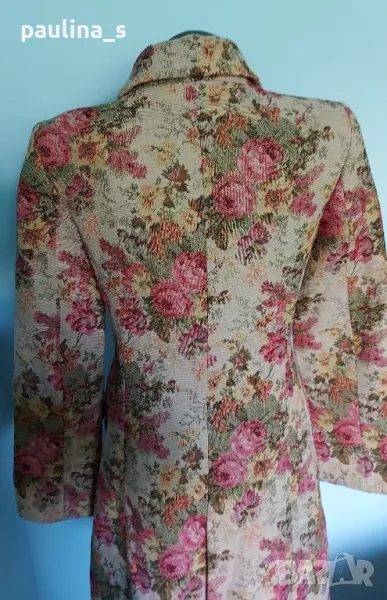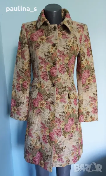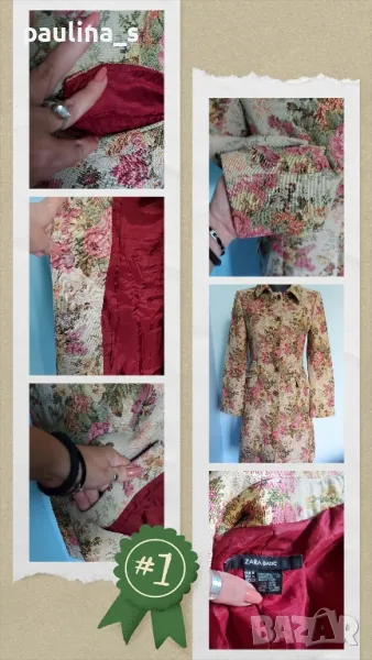 1️⃣. "Zara" basic - Цената е крайна, без пазарлъци 159,99лв / 76 евро. Марково преходно палто във флорален принт, прилича на бродиран гоблен и камерата не може да улови красотата на дрехата, като жива е. Лимитирана серия, размер М или малък L - вижте мерките в обявата. Хастарът е в червено, платът е плътен, мек и немачкаем. Няма дефекти и етикет. Една бройка е.