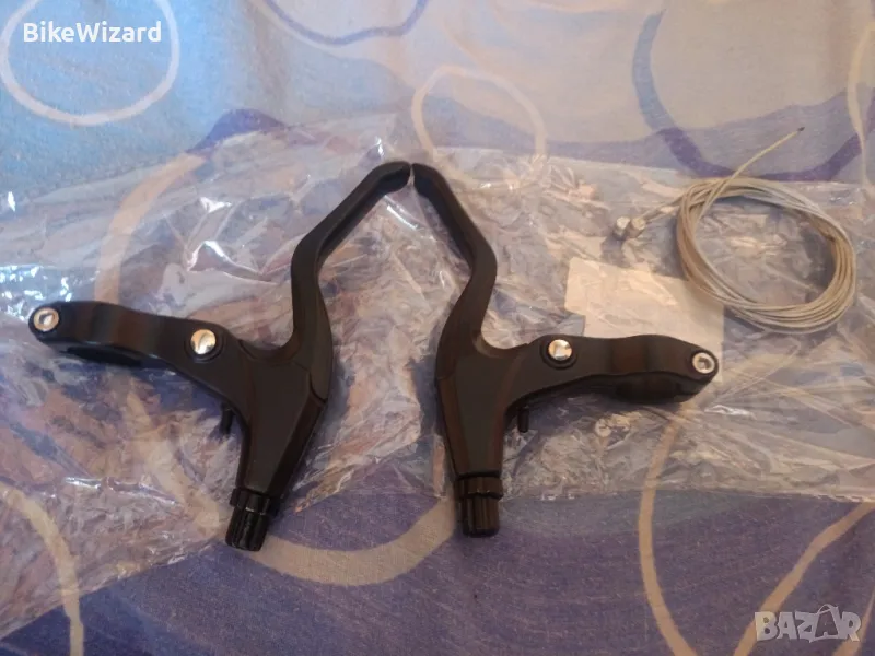 Комплект черни алуминиеви лостове за спирачки за велосипед + жила НОВИ → Обява 47000479