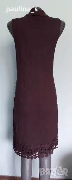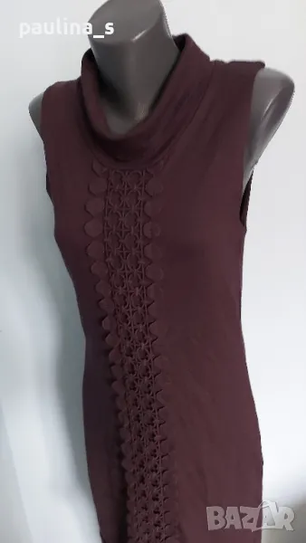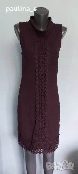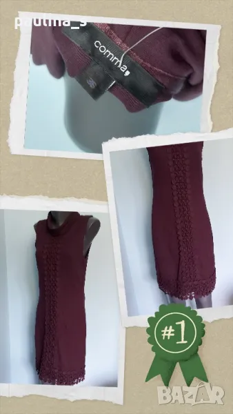 1️⃣. M / 2XL "comma," - Цената е крайна 29,99лв / 15 евро. Нова елегантна брандова рокля с дантела за декорация, една бройка е. Цветът е Патладжан. Материята е вискоза, полиамид и еластан, доста еластична и покрива няколко размера, посочени са. Нова е, без дефекти и етикет.
