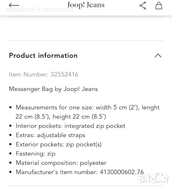 Чантата е купувана от BestSecret, януари тази година - прикачен ордер. Вече не е налична в този цвят.