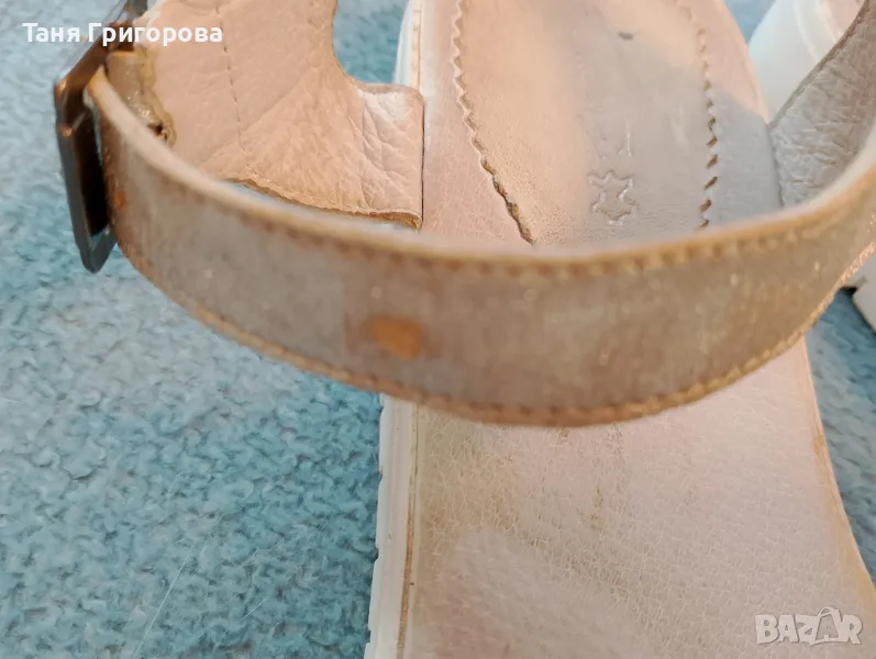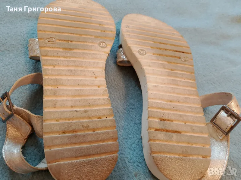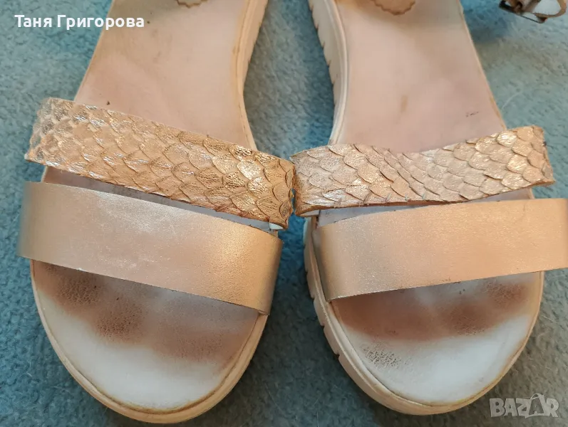 Сандалите са носени и имат следи от употреба. Постарала съм се със снимките да покажа реалното им състояние. Същевременно нямат скъсано или разлепено. Много са удобни, ниски, но не от типа чак плоски. Мисля, че цената е напълно съобразена със състоянието, като се има предвид, че са естествена кожа.