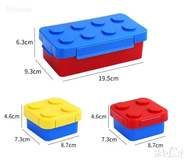 Нов Комплект детски кутии за храна - тип Лего * Нова детска кутия * училище * 3 бр. * Без BPA