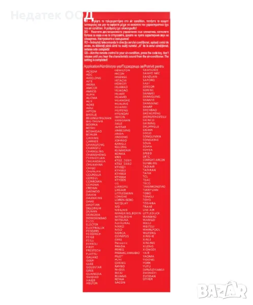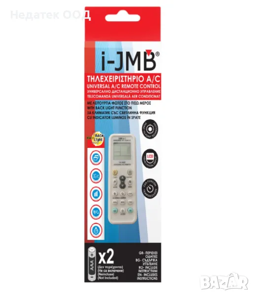 Дистанционно управление за климатик (AC контрол) със светлинна функция на гърба, идеално за повечето производители. Той съдържа инструкции, като същевременно има всички класически функции, които официалният контрол на компаниите има. Работи с 2 батерии AAA (не са включени).