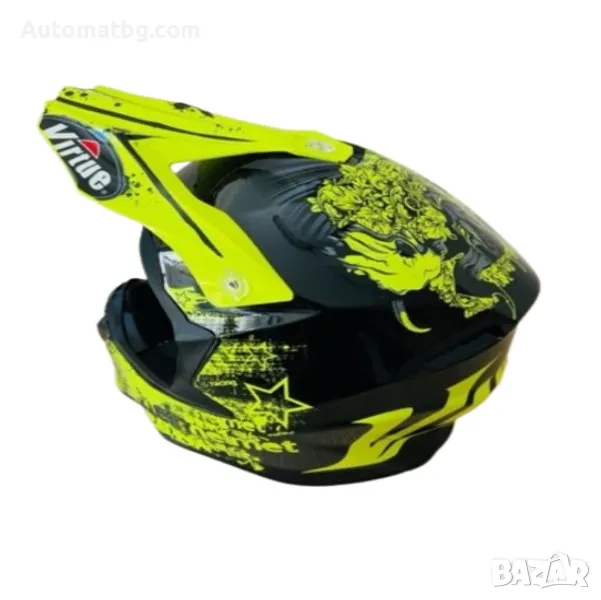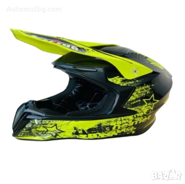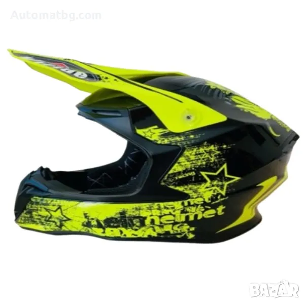 Кросова каска Automat, За мотор, Атв, Велосипед, M и L размер, Черен с неон.