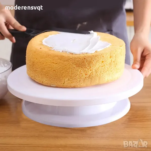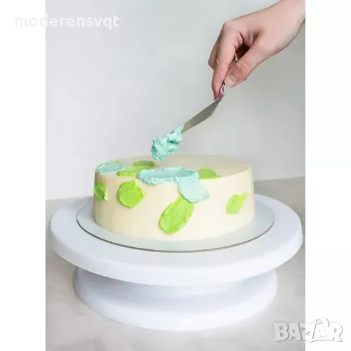 ВЪРТЕЩА - благодарение на факта, че чинията е въртяща се, всеки може лесно да украси тортата чрез завъртане на стойката . Като алтернатива можете да изберете печива, която ви интересува на дадено място в чинията.