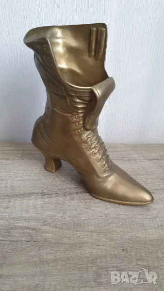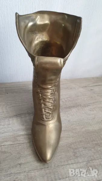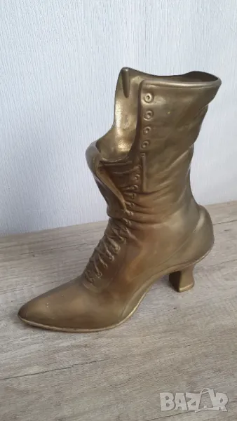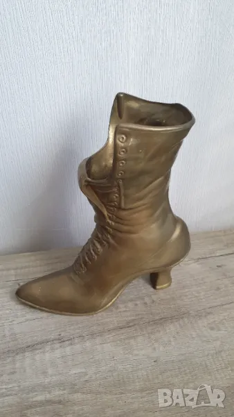 Стар декоративен викториански месингов дамски ботуш -височина 24см.Може да се използва за ваза,кашпа,декорация.Здрав.