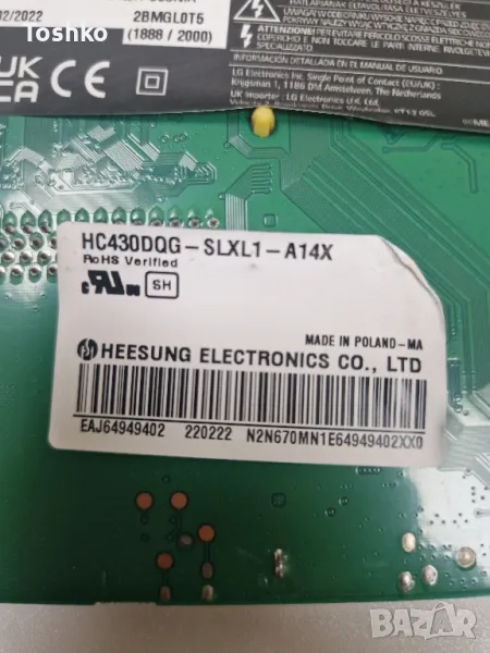 LG 43UP751C0ZF EAX69715102(1.0)  66781803  EAX68304102(1.0) PANEL HC430DQG-SLXL1-A14X, снимка 1 - Части и Платки - 47003839 LG 43UP751C0ZF EAX69715102(1.0)  66781803  EAX68304102(1.0) PANEL HC430DQG-SLXL1-A14X, снимка 2 - Части и Платки - 47003839 LG 43UP751C0ZF EAX69715102(1.0)  66781803  EAX68304102(1.0) PANEL HC430DQG-SLXL1-A14X, снимка 3 - Части и Платки - 47003839 LG 43UP751C0ZF EAX69715102(1.0)  66781803  EAX68304102(1.0) PANEL HC430DQG-SLXL1-A14X, снимка 4 - Части и Платки - 47003839 LG 43UP751C0ZF EAX69715102(1.0)  66781803  EAX68304102(1.0) PANEL HC430DQG-SLXL1-A14X, снимка 5 - Части и Платки - 47003839 LG 43UP751C0ZF EAX69715102(1.0)  66781803  EAX68304102(1.0) PANEL HC430DQG-SLXL1-A14X, снимка 6 - Части и Платки - 47003839 LG 43UP751C0ZF EAX69715102(1.0)  66781803  EAX68304102(1.0) PANEL HC430DQG-SLXL1-A14X, снимка 7 - Части и Платки - 47003839 1/7