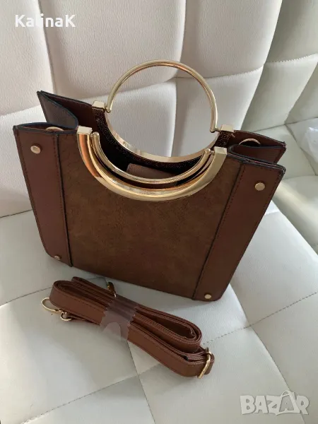 Нова дамска чанта в кафяв цвят със златисти дръжки