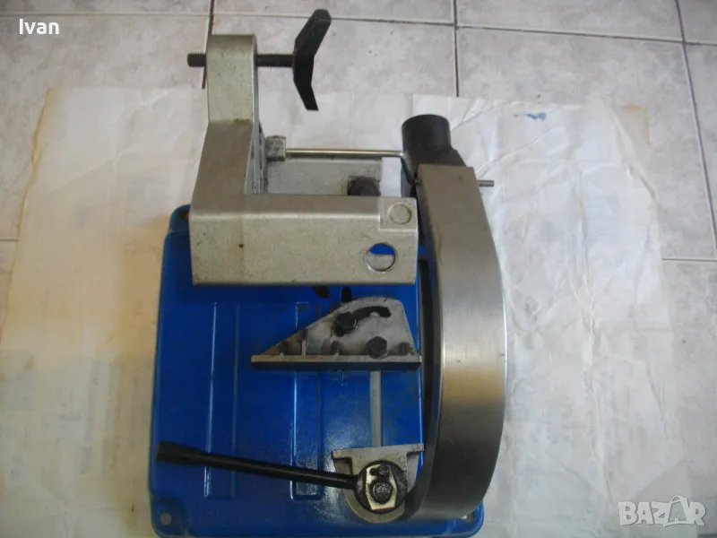 Стойката е почти нова, с много запазен външне вид и отлично техническо/работно състояние. Няма надрасквания по обята на долната плоча/основа. Липсва лепенка стикер за марка и производство. Предполагам немска. С голямо тегло от 7,5 кг. Долна стоманена основа, позволяваща изключително стабилен и здрав самостоятелен стоеж. Размери на плочата/долна основа 340 х 340 мм, височина на стойката - 400 мм. Алуминиево тяло/корпус. Наличие на метален конектор за отпадъчен прах. Метален предпазител за диска на поставен ъглошлайф.