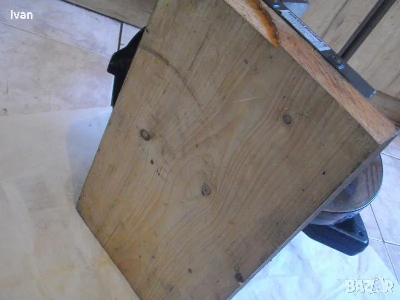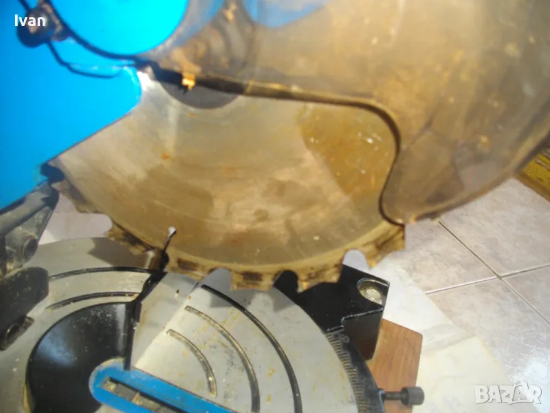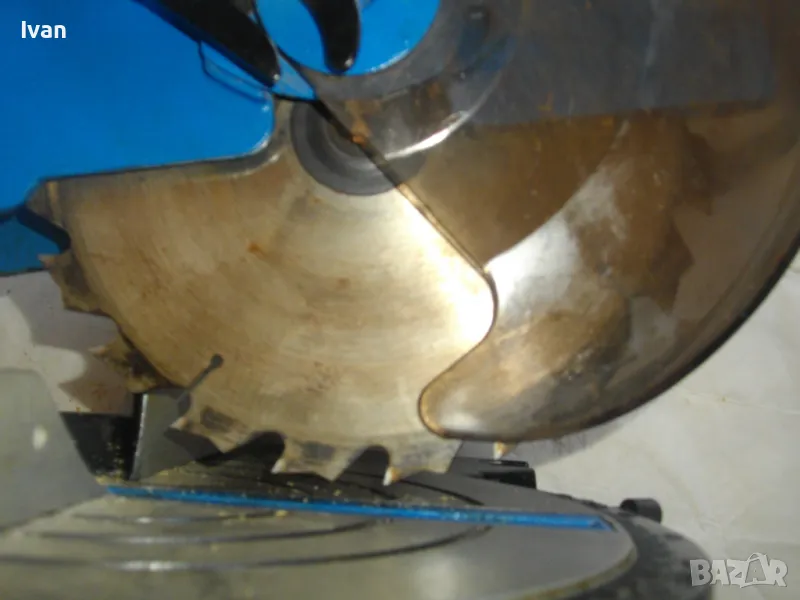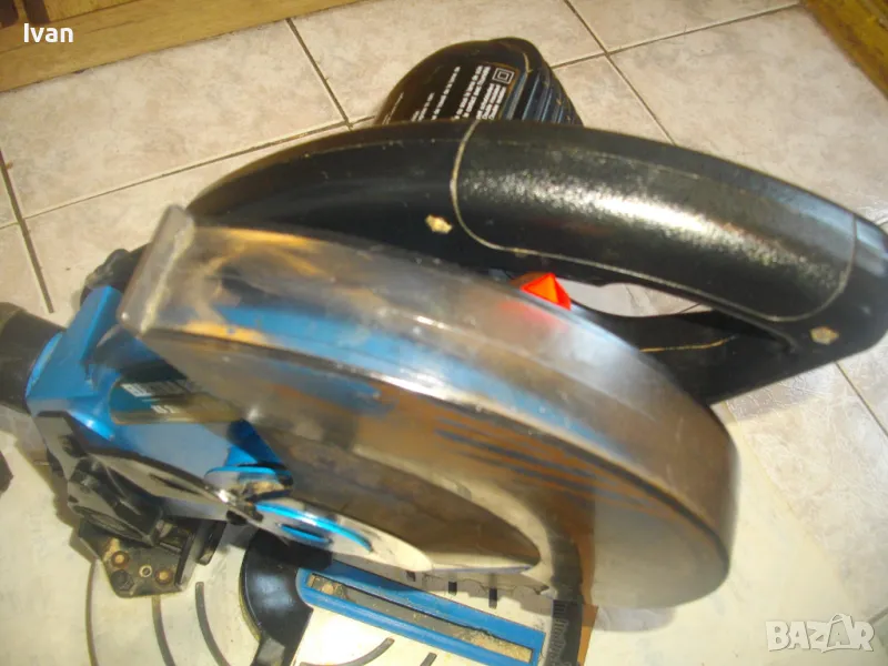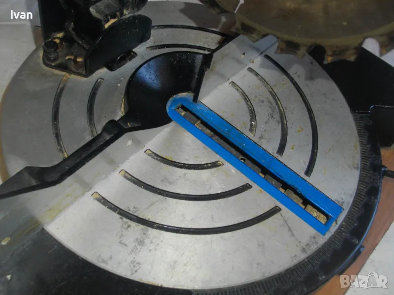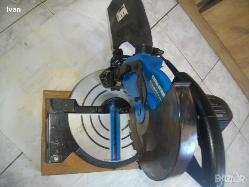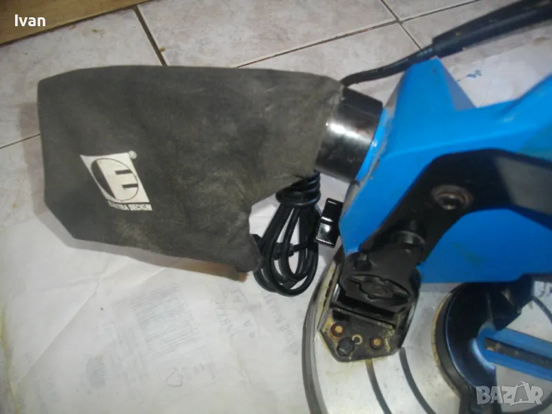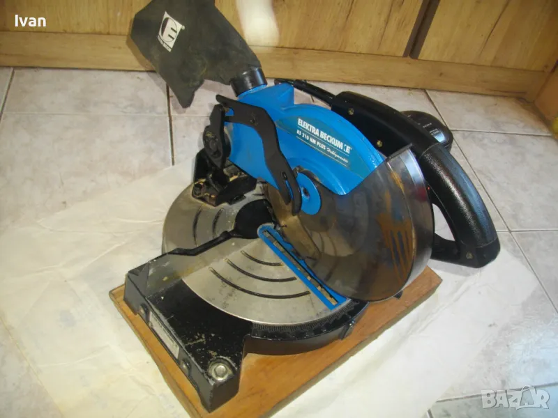 ОПИСАНИЕ на синя пендула с дървена допълнителна основа. Немско произовдство 2000г. . Марка и модел - Electra Beckum, модел Meppem KS210 HM - Plus Hobbymaster. Запазен външен вид на машината и добро техническо състояние. Мощност на мотора - 1200 вата, скорост 5000 об/мин. За големи дискове размер ф 210 мм. Наклон на рязане 0-45 градуса. Налична торба платова на конектора на отпадъчна прах. Диск отличен, с видирани твърдосплавни частици на зъбите. Забележка към диска - пластмасовия прозрачен предпазител се е извадл от металния обтегач, който го отваря и трябва да се оправи, но това не пречи на работата на машината. Алуминиев плот на пендулата. Машината е захваната за допълнителна здрава и стабилна дървена основа с размери 420 х 155 мм. Тегло на машината с дървената основа - 10,0 кг.