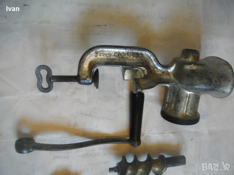 Почти нова РЕТРО ВИНТИДЖ масивна, здрава месомелачка за кайма и мелачка за домати, зеленчук, плодове, с високото качество на изделията от времето на Соца.