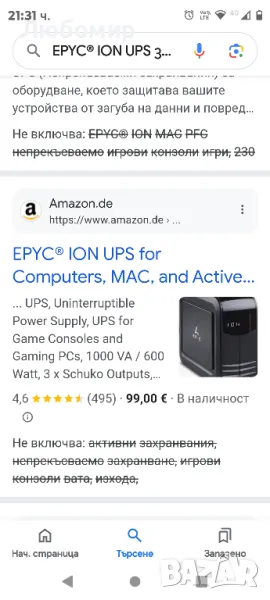 EPYC® ION UPS за компютри, MAC и активни PFC захранвания, UPS, непрекъсваемо захранване,