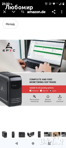 Идеален за игрови конзоли: Ion е идеалното UPS захранване за PS5, PS4 Pro, Xbox Series X и всички следващи поколения конзоли, оборудвани с активни PFC захранвания.Софтуер за наблюдение: непрекъсваемото захранване е оборудвано със специален софтуер, който е съвместим с всички популярни операционни системи и ви позволява да наблюдавате най-важните функционални параметри и да задавате опции за автоматично изключване.Защита на режим, рутер и телефон: с двойния порт RJ11/RJ45 можете да филтрирате вашата телефонна/модемна линия и да освободите сигнала от чести мрежови смущения.