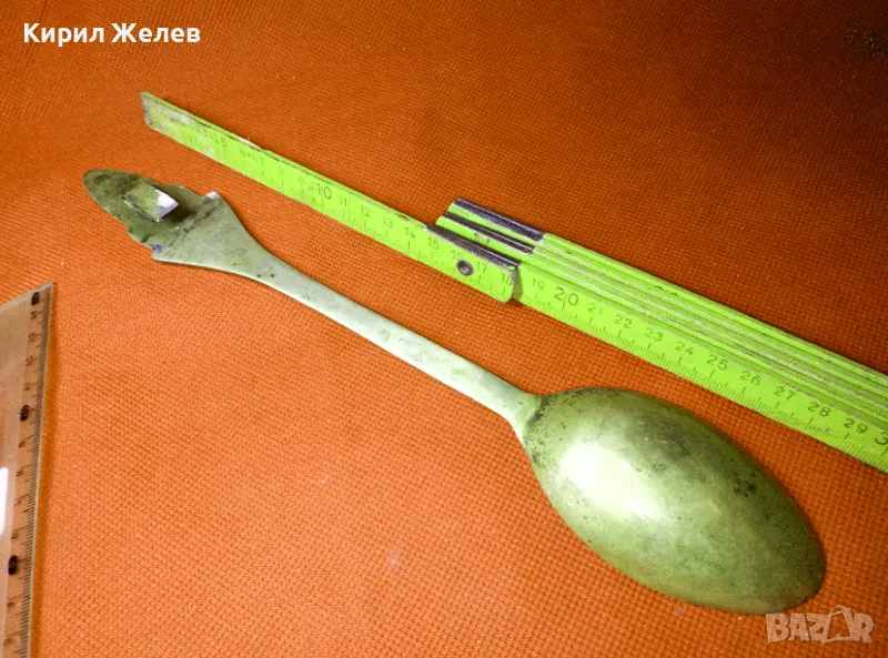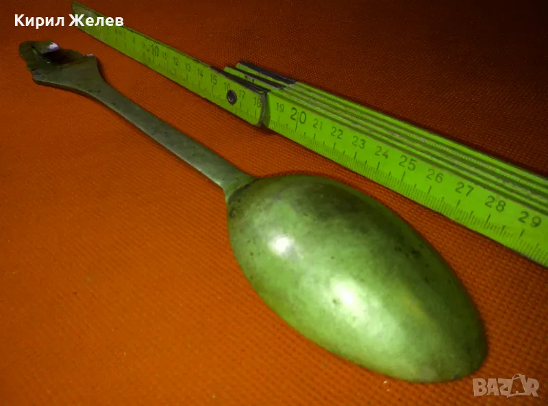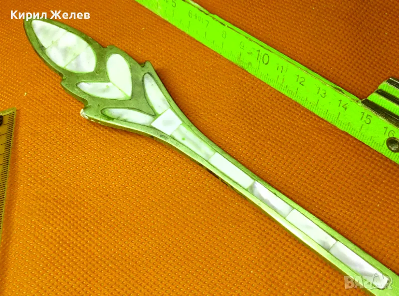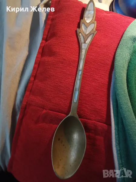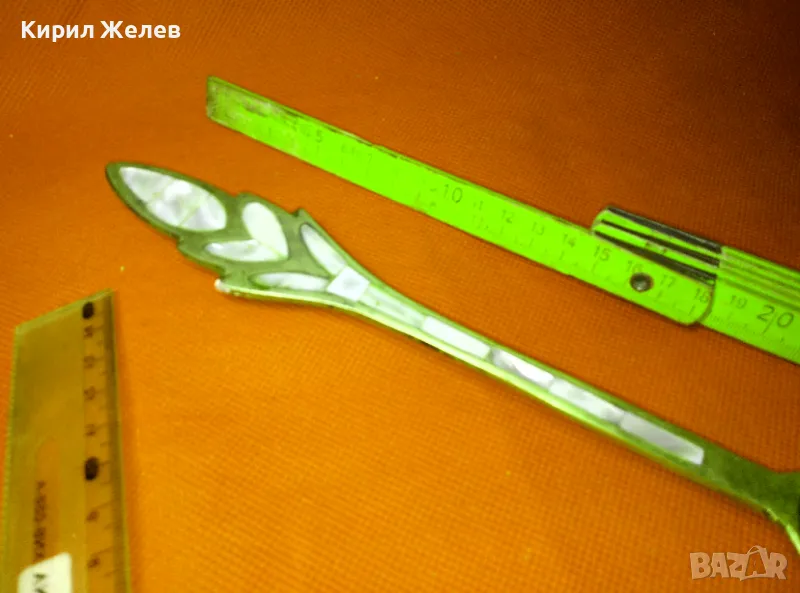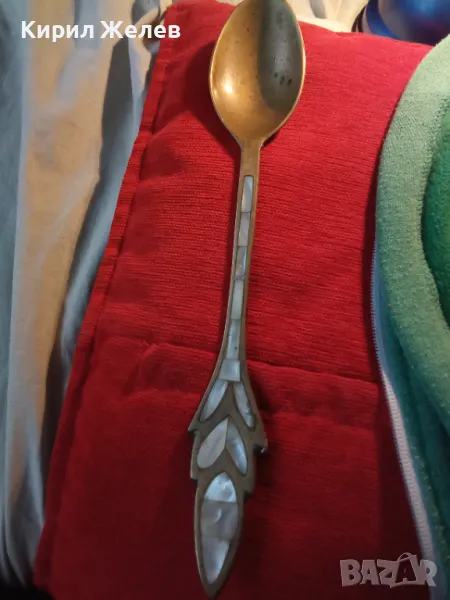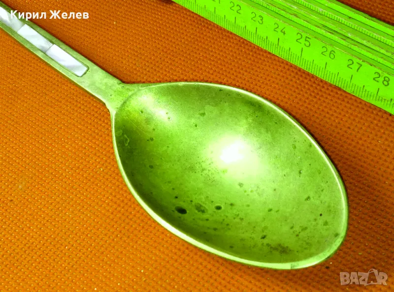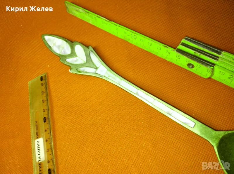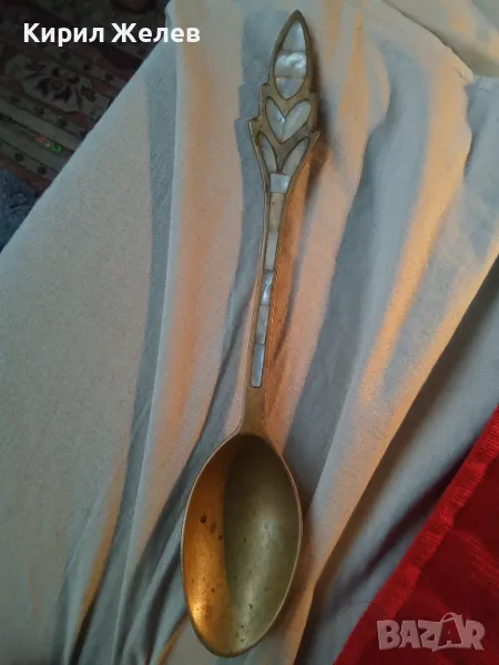 СТАРА ОГРОМНА БРОНЗОВА ЛЪЖИЦА РЪЧНО ИНКРУСТИРАНА със СЕДЕФ - ЧАСТ от РЕТРО КОМПЛЕКТ 45553