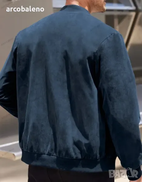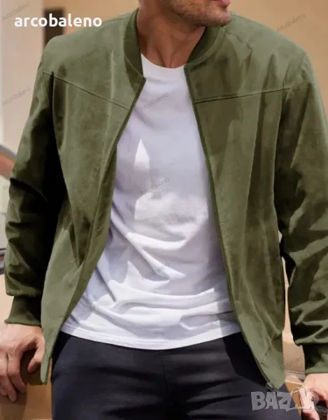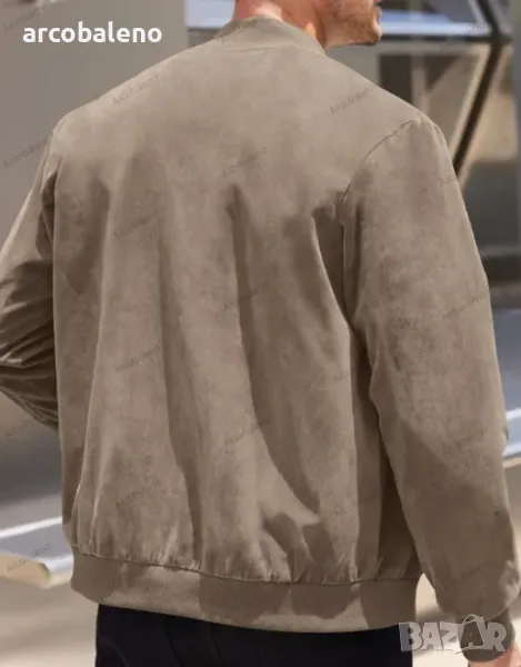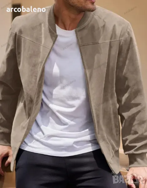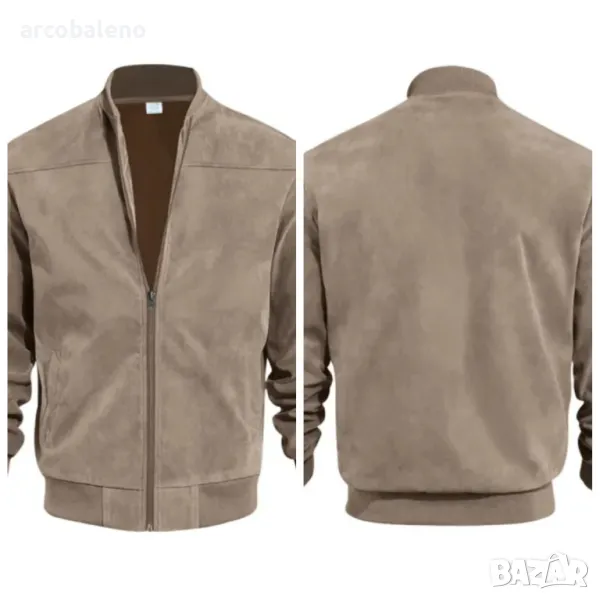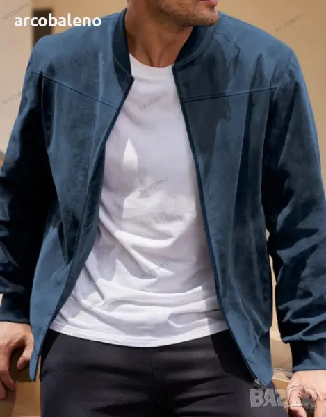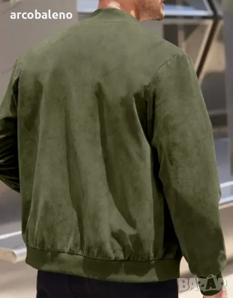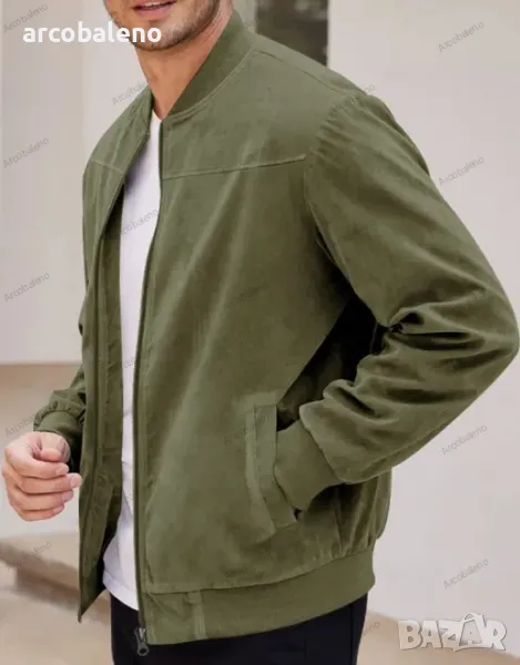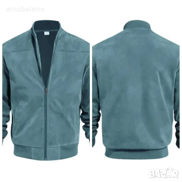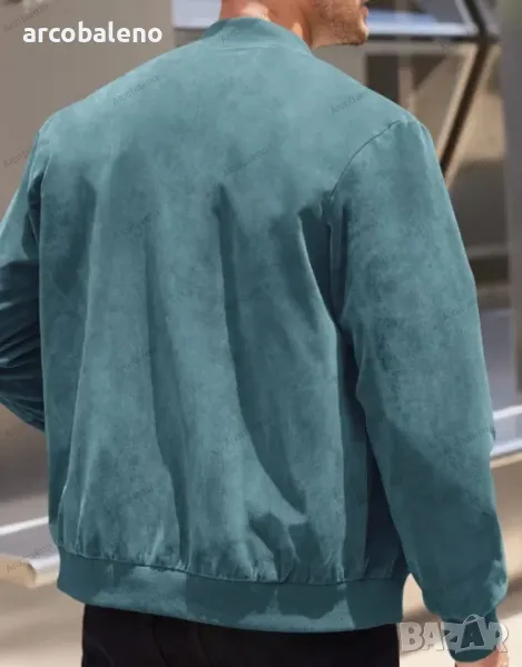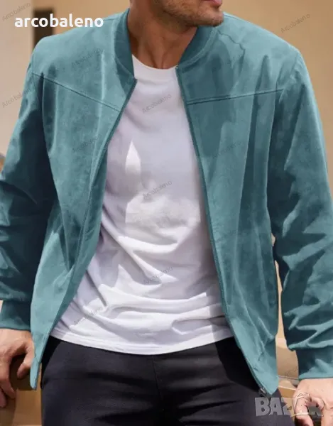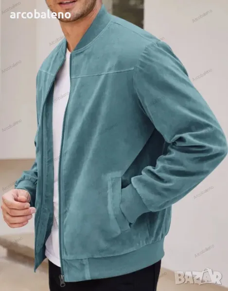 Велурено едноцветно мъжко яке с цип с дълъг ръкав, 4цвята