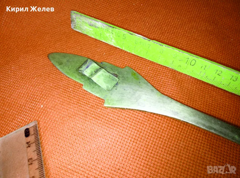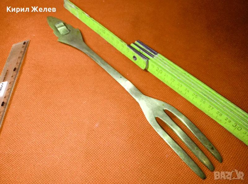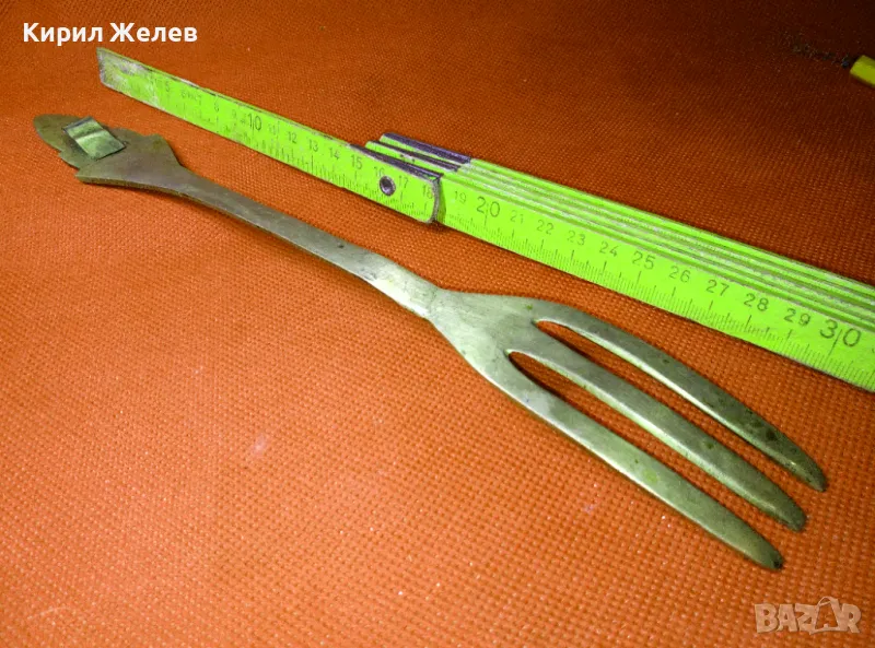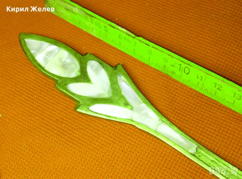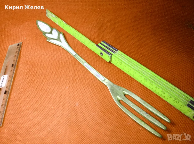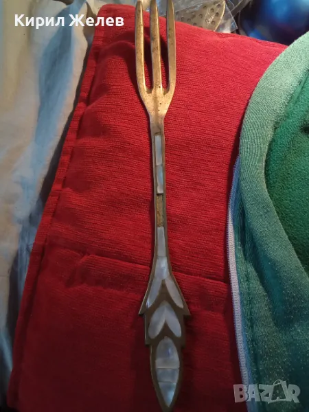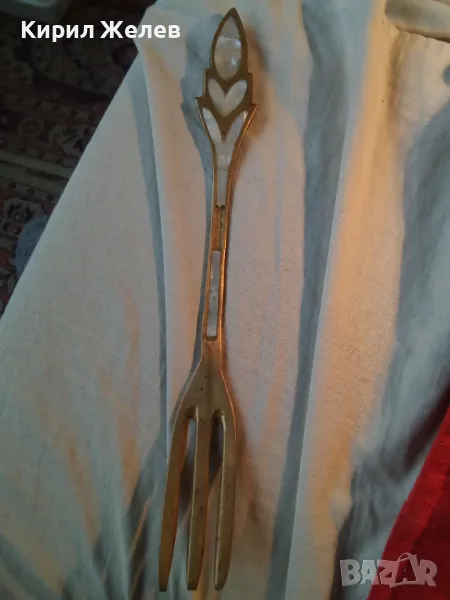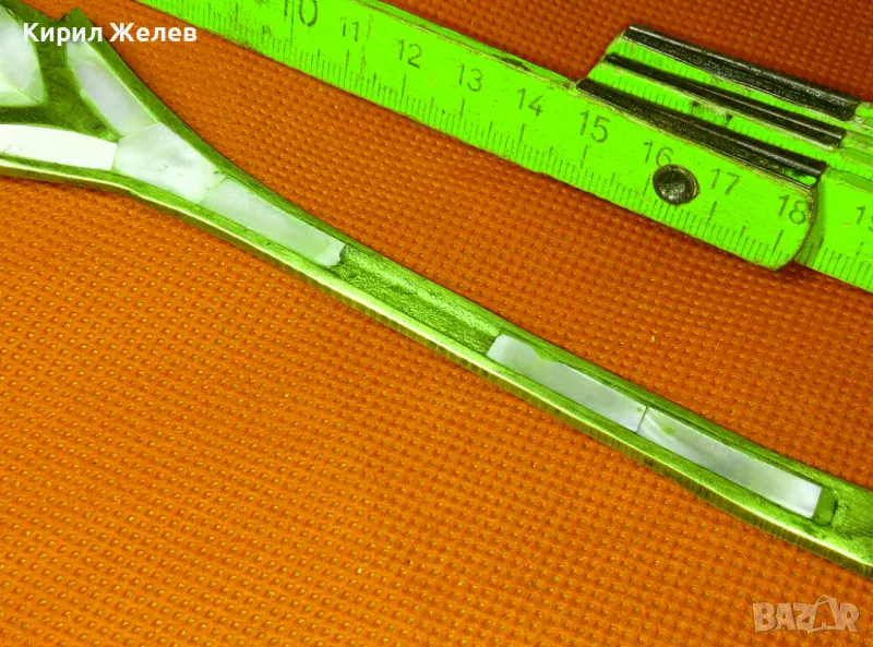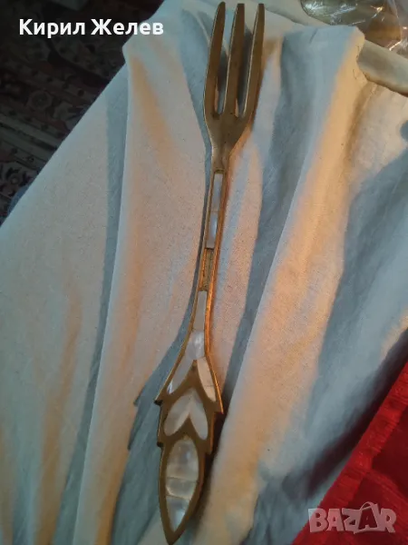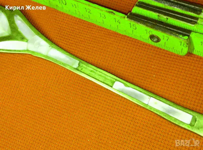 СТАРА ОГРОМНА БРОНЗОВА ЛЪЖИЦА РЪЧНО ИНКРУСТИРАНА със СЕДЕФ - ЧАСТ от РЕТРО КОМПЛЕКТ 45554