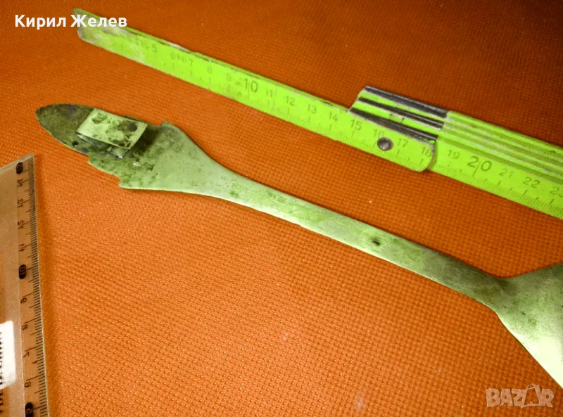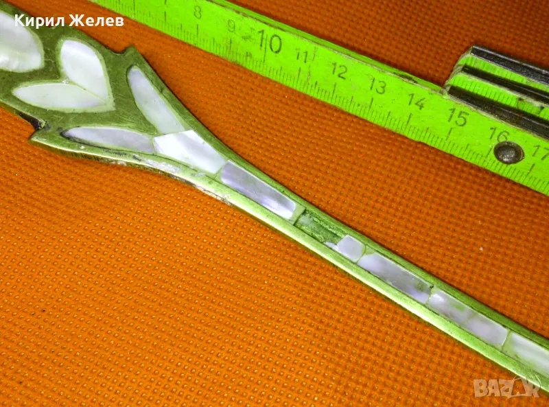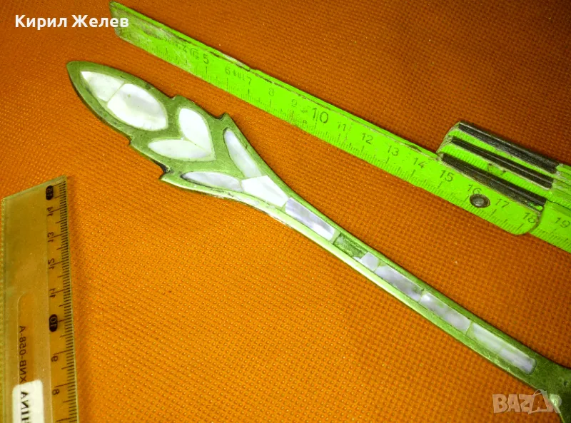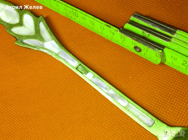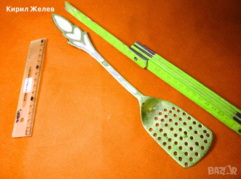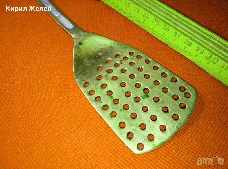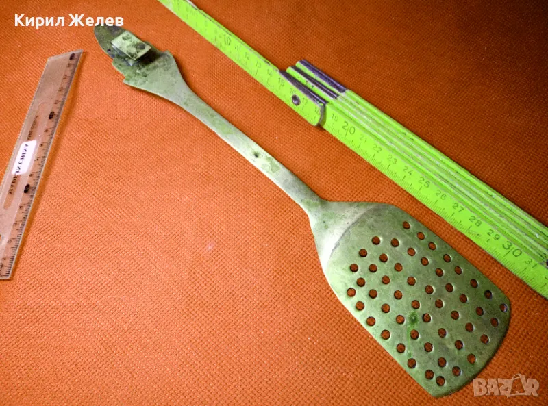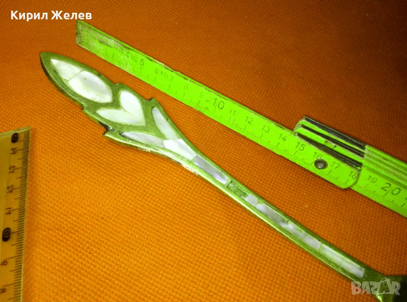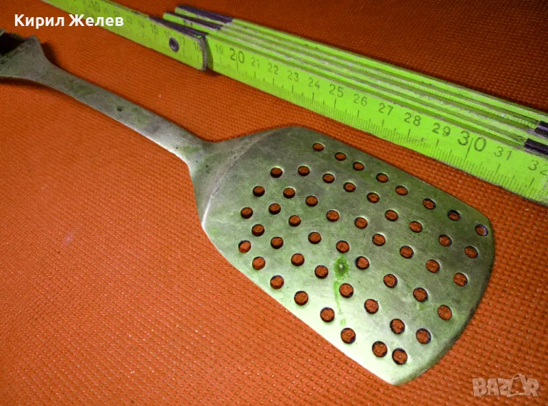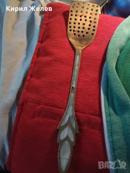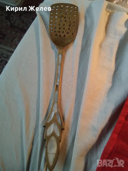СТАРА ОГРОМНА БРОНЗОВА ЛОПАТКА - ЦЕДКА РЪЧНО ИНКРУСТИРАНА със СЕДЕФ - ЧАСТ от РЕТРО КОМПЛЕКТ 45545