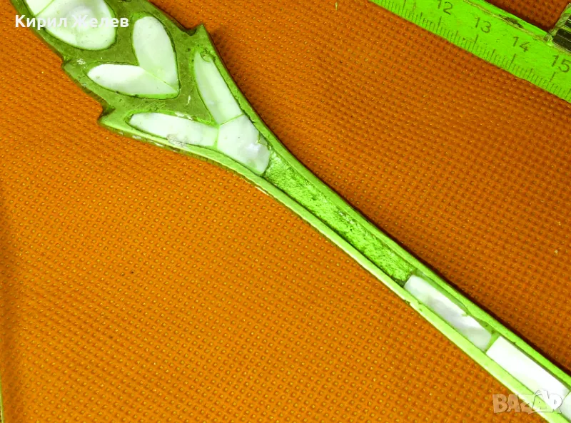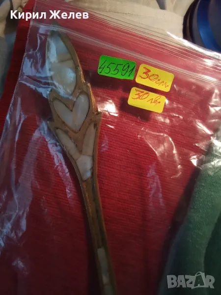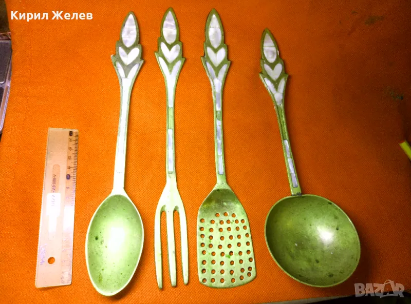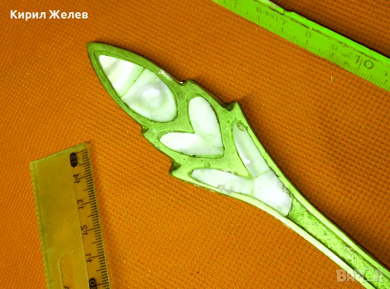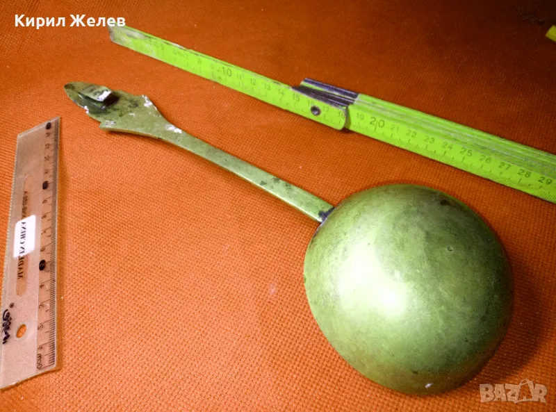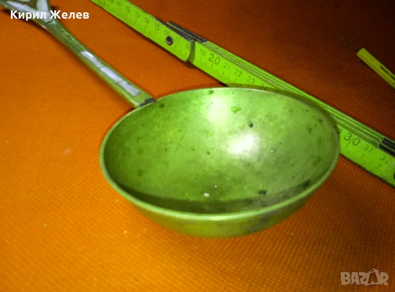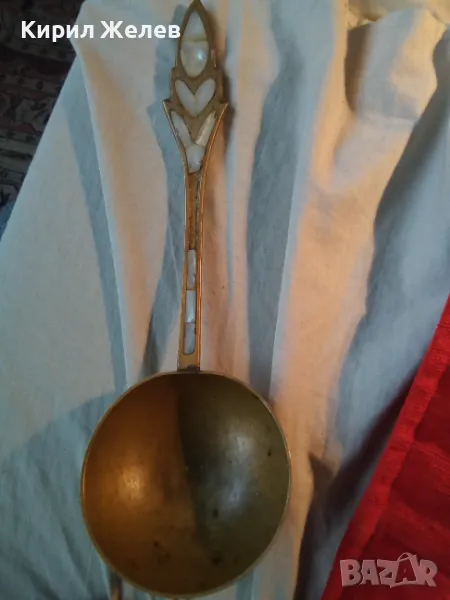 СТАР ОГРОМЕН БРОНЗОВ ЧЕРПАК / ЛЪЖИЦА РЪЧНО ИНКРУСТИРАН със СЕДЕФ - ЧАСТ от РЕТРО КОМПЛЕКТ 45591