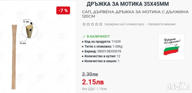 Традиционен многофункционален здрав и надежден практичен инструмент, с десетилетия работен живот при високо работно натоварване, може да бъде многократно ремонтиран (клепане, закаляване и точене), за разлика от вносните подобни инструменти. Комплектова се с дървена дръжка сап според нуждите, предпочитанията и изискванията на потребителя - в магазинната мрежа у нас се предлагат нови дръжки ръкохватка от бук и др.на цена около 2 лв.